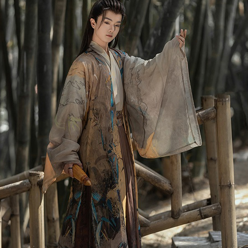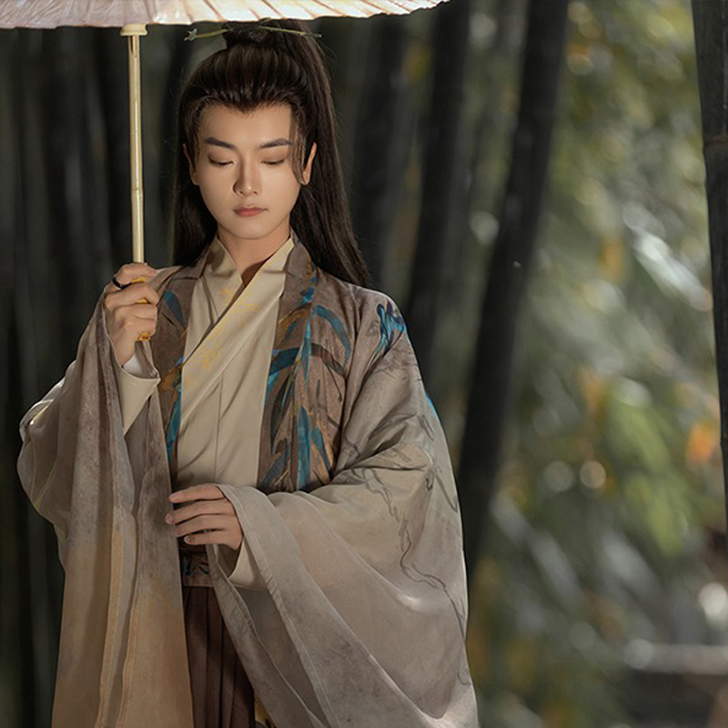- This Hanfu emphasizes harmony between nature and attire, using beige and brown as its primary palette to evoke the tranquility of bamboo groves. The design incorporates traditional Chinese brush-painting elements, creating a soft yet powerful visual impact. Whether worn for photography, events, or Wuxia-themed styling, it offers both authenticity and striking stage presence.