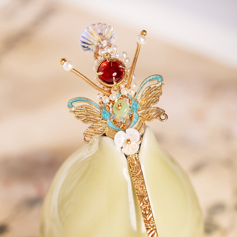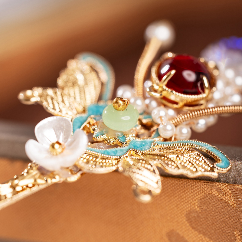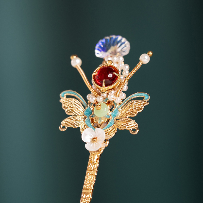 - Enameled Butterfly is an ideal companion for Hanfu or Qipao ensembles, especially those in soft, matching tones. Whether paired with elaborate traditional hairstyles or modern adaptations, it enhances the overall look with grace and ease. Perfect for festivals, photoshoots, or daily wear, this hairpin transforms ordinary moments into poetic expressions of classical charm—capturing the timeless allure of a butterfly’s gentle dance amidst blooming flowers.