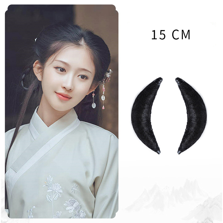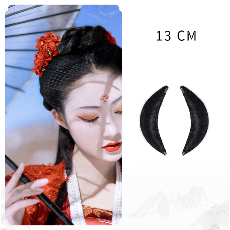 Crafted to replicate the elegant “horn-shaped” side hairstyles seen in classical Chinese portraits, these pointed hair pads provide structured yet natural-looking volume for Hanfu side buns and temple-area styling. Perfect for achieving the iconic Tang and Ming dynasty-inspired looks with authentic shaping.