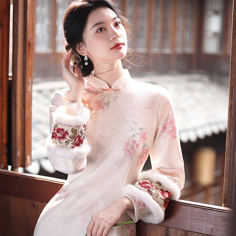 - This qipao stands out for its graceful balance of comfort and elegance. The rich textures, thoughtful tailoring, and symbolic patterns come together to create a timeless silhouette that highlights the wearer’s temperament. It is especially suited for women who appreciate classic beauty infused with festive charm.