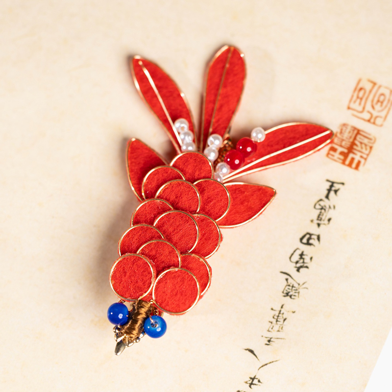 - Delicately crafted from velvet fabric, faux pearls, and alloy materials, this hair clip features rich textures and vivid colors. The harmonious blend of deep red and subtle metallic accents creates a lively yet elegant look, making it an ideal choice for New Year celebrations and traditional gatherings.