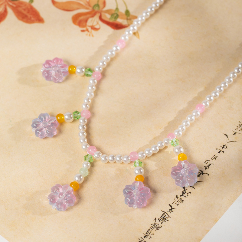 - The Sakura Cascade necklace demonstrates exceptional versatility in styling. It pairs beautifully with Hanfu or Qipao in matching color schemes, where its pink and white tones can harmonize with the garment or provide an elegant accent. The design adapts effortlessly to any hairstyle—whether worn with an elaborate updo that leaves the neckline unobstructed or framed by loose waves that allow the pearls to peek through with subtle charm. Drape this piece around your neck to add a touch of springtime romance and timeless elegance to your classical ensemble.