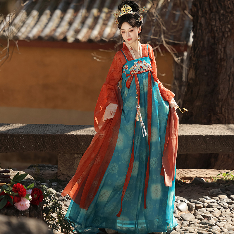 - Perfect for springtime daily wear, this Tang-style Hanfu combines lightness, elegance, and cultural depth. Its vivid traditional motifs, graceful colors, and versatile layering make it an ideal choice for those who appreciate the poetic charm and historical romance of Tang fashion.
