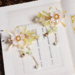 - Soft in color yet rich in detail, this hairpin brings a sense of freshness and sophistication to the overall look. The balanced floral arrangement creates a full and lively composition, while its subtle green tones evoke tranquility and natural beauty. It is an ideal choice for those who appreciate understated elegance with a poetic touch.
